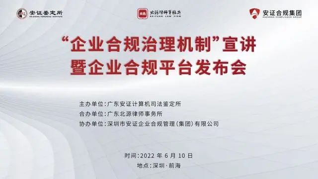 6月10日消息,企業(yè)合規(guī)治理機制”宣講暨企業(yè)合規(guī)平臺發(fā)布會在深圳前海舉辦?;顒佑缮钲谑衅髽I(yè)合規(guī)第三方監(jiān)控機構(gòu)廣東安證計算機司法鑒定所與專注于數(shù)據(jù)合規(guī)領(lǐng)域的廣東北源律師事務(wù)所聯(lián)合主辦,深圳首家獨立第三方網(wǎng)絡(luò)安全與數(shù)據(jù)合規(guī)服務(wù)提供者深圳市安證企業(yè)合規(guī)管理(集團)有限公司協(xié)辦。市人民檢察院、市司法局、前海管理局等相關(guān)單位領(lǐng)導出席發(fā)布會,法學專家、律師代表、企業(yè)代表等應(yīng)邀參會并展開交流討論。