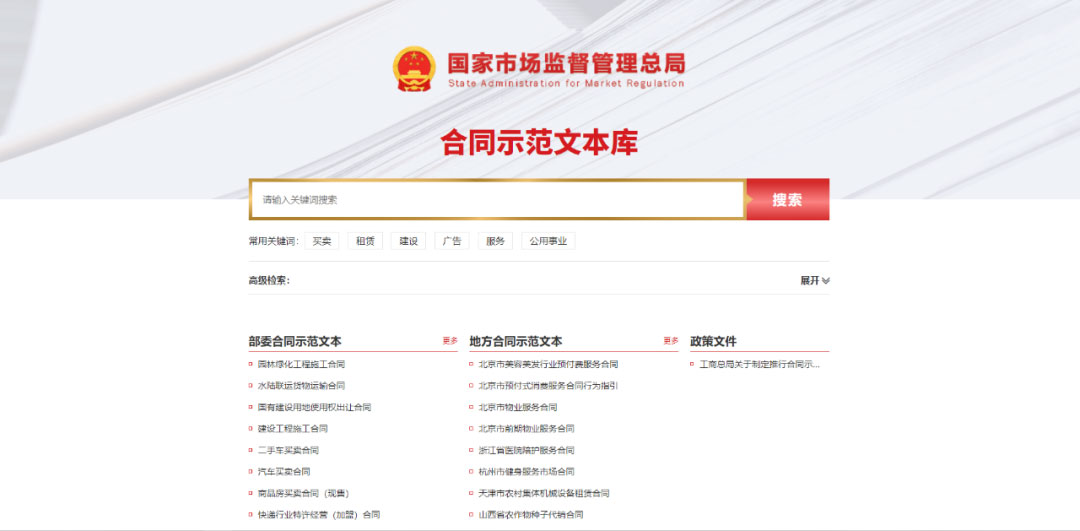 全國合同示范文本庫上線