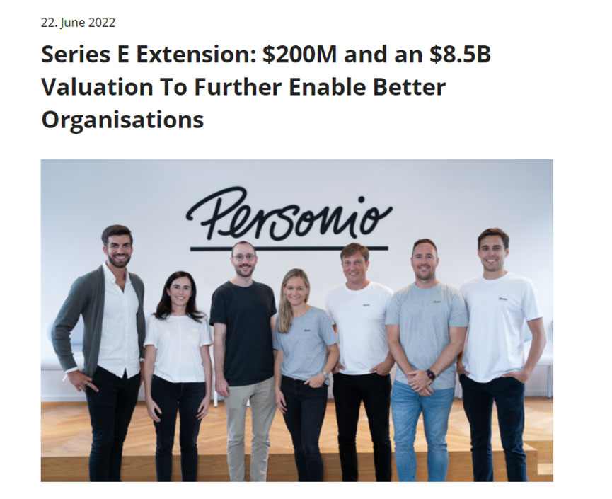 6月26日消息,人力資源智能自動化平臺Personio宣布獲得2億美元E+輪融資,本次由 Greenoaks領(lǐng)投,估值達(dá)到85億美元。而距離上一次E輪2.7億美元融資(2021年10月),僅過去了8個月的時(shí)間,其融資速度之快,金額之大令人驚嘆。